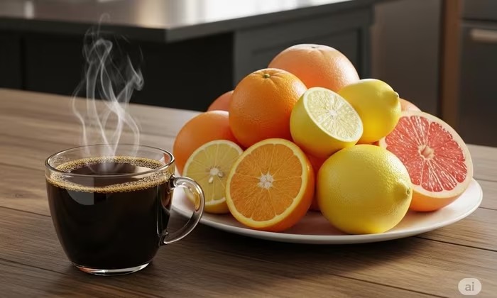 1. Không nên uống cà phê cùng lúc với trái cây họ cam quýt