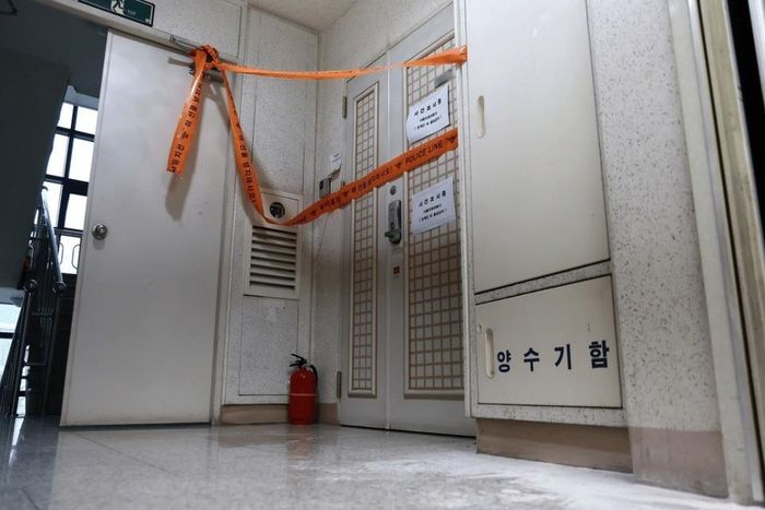 Cảnh sát phong tỏa căn hộ của nghi phạm. (Ảnh: Korea Herald)
