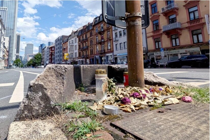 Tại hiện trường vụ tai nạn trên đường Mainzer Landstraße, người dân địa phương đã đến đặt nến và hoa tưởng niệm hai nạn nhân tử vong.