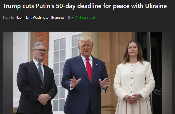 Đầu tháng này, Trump đã cho Putin 50 ngày để làm trung gian hòa bình với Ukraine. Nếu không, ông sẽ áp đặt thuế quan và trừng phạt đối với Nga và các đối tác thương mại của nước này.