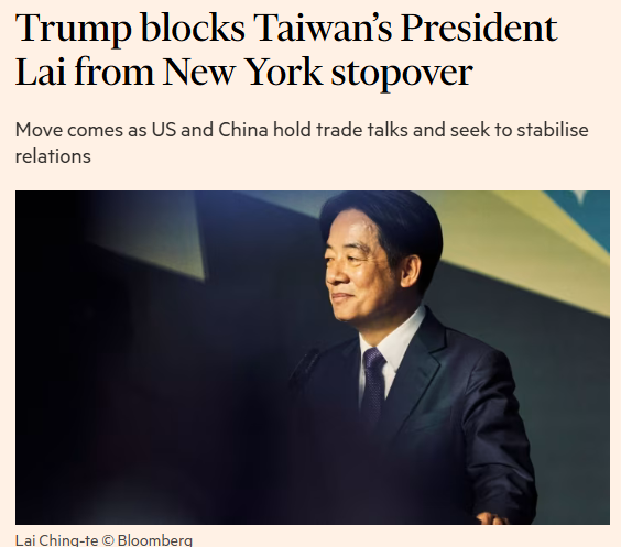 Ông Lại Thanh Đức dự định quá cảnh tại Hoa Kỳ vào tháng 8 trên đường đến Paraguay, Guatemala và Belize, những quốc gia công nhận Đài Loan là một quốc gia. Tuy nhiên, theo ba nguồn tin thân cận, Hoa Kỳ đã thông báo với ông Lai rằng ông không thể đến New York trên đường đi.
