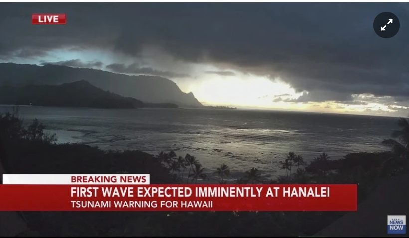 Tại vịnh Hanalei, phía bắc đảo Kauai, mặt biển được cho là đă rút xa tới hơn 30 m, theo thông tin từ phóng viên tại hiện trường.