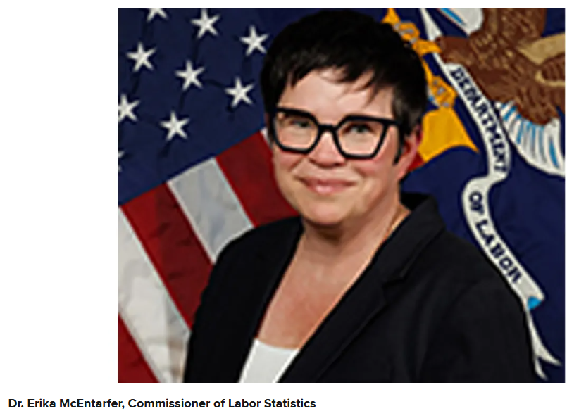 Người phát ngôn của Cục Thống kê Lao động (BLS) nói với CNBC: "BLS có thể xác nhận Ủy viên Erika McEntarfer đã bị sa thải hôm nay. Phó Ủy viên William Wiatrowski sẽ giữ chức Quyền Ủy viên của BLS."