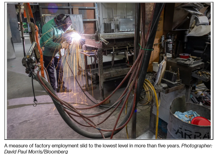 Dữ liệu của chính phủ sáng nay cho thấy việc làm tại nhà máy đã giảm trong tháng Bảy, tháng thứ ba liên tiếp, chuỗi giảm dài nhất trong hai năm. Theo báo cáo việc làm hàng tháng, mức tăng trưởng trung bình của tổng số việc làm trong ba tháng qua là thấp nhất kể từ đại dịch.