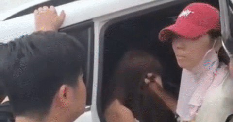 Không giữ được bình tĩnh, người vợ liên tục đập vào cửa kính yêu cầu cả hai ra ngoài. Người chồng sau đó cố gắng lái xe bỏ trốn, nhưng một nhóm người đi đường đã nhanh chóng vây quanh chiếc xe để giúp người vợ, không cho chiếc xe di chuyển.