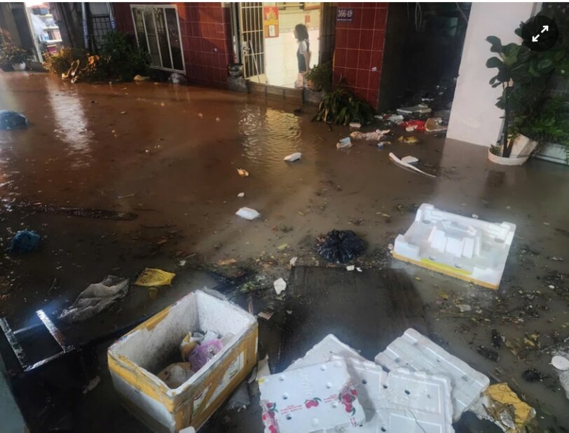 Tại hẻm 336 và 334 đường Chu Văn An, phường Bình Thạnh, nước ngập sâu, có nơi ngập tới khoảng một mét. Theo chia sẻ của người dân địa phương, khu vực này có hệ thống thoát nước chưa hoàn thiện, địa hình trũng nên mỗi khi mưa lớn, nước đổ dồn về và gây ngập sâu.