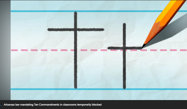 Hôm thứ Hai, một thẩm phán liên bang đã tạm thời chặn một luật của Arkansas, theo đó yêu cầu tất cả các lớp học công lập phải trưng bày Mười Điều Răn. Luật này dự kiến có hiệu lực vào tuần tới.