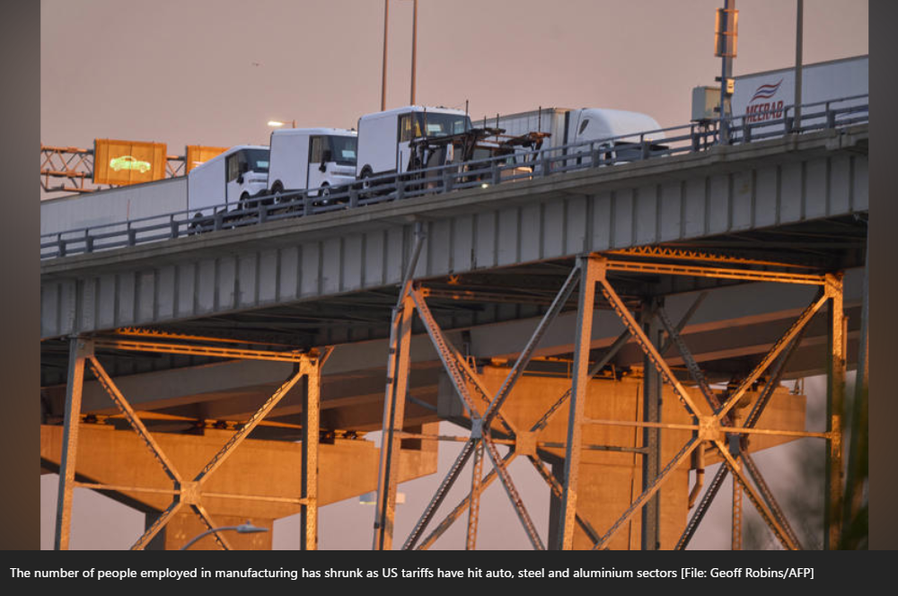 Số lượng người làm việc trong ngành sản xuất đã giảm gần 10.000 người trong tháng 7 so với cùng kỳ năm trước do các ngành liên quan đến thép, nhôm và sản xuất ô tô cắt giảm tuyển dụng và sa thải nhân viên.