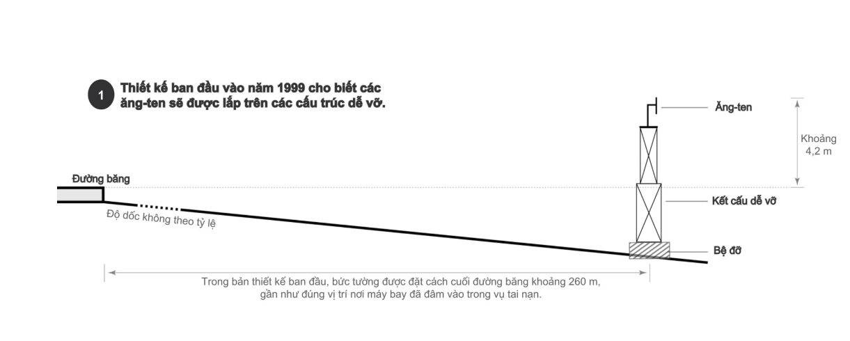 Sơ đồ được phác họa dựa trên bản vẽ cấu trúc bê tông tại cả hai đầu đường băng. Đồ họa: New York Times - Việt hóa: Phương Linh.
