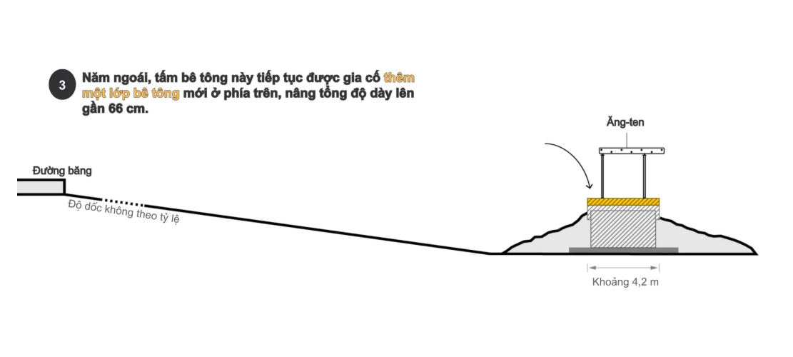 Khi được hỏi, Bộ Giao thông nói rằng lớp bê tông mới nhằm “giữ ổn định tín hiệu” và “ngăn lún do mưa gió”.
