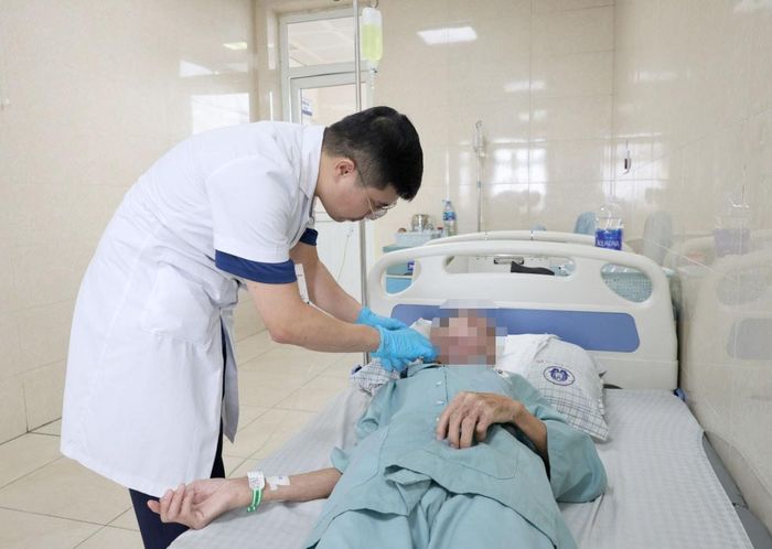 Theo hồ sơ bệnh án, người bệnh Đ.C.V (82 tuổi ở xã Đan Thượng, tỉnh Phú Thọ) có tiền sử ung thư hạ họng, nhập viện trong tình trạng có khối loét lớn vùng cổ phải lan rộng lên vùng gáy. Tại vị trí khối loét có nhiều giòi và dịch mủ, thể trạng người bệnh gầy yếu, suy kiệt.