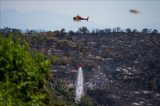 Trực thăng được triển khai để khống chế cháy rừng ở Lleida, Tây Ban Nha. Ảnh: THX/TTXVN