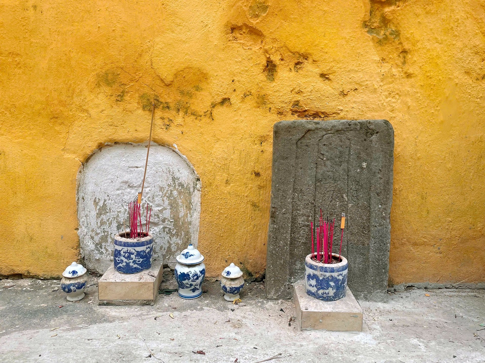 Cùng với những nét đặc trưng hiện diện qua từng góc phố ấy, nếu quan sát kỹ hơn một chút, sẽ thấy vài bia đá trấn yểm nằm nép mình ở góc tường trong con hẻm nhỏ hay dưới gốc cây cổ thụ, hình thức đơn sơ nhưng chứa đựng giá trị về lịch sử, văn hóa thú vị.