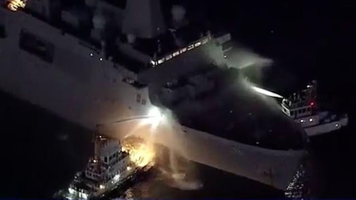 Một đám cháy đã bùng phát trên tàu USS New Orleans của Hải quân Mỹ đang neo đậu ngoài khơi tỉnh Okinawa - Nhật Bản chiều 20-8.