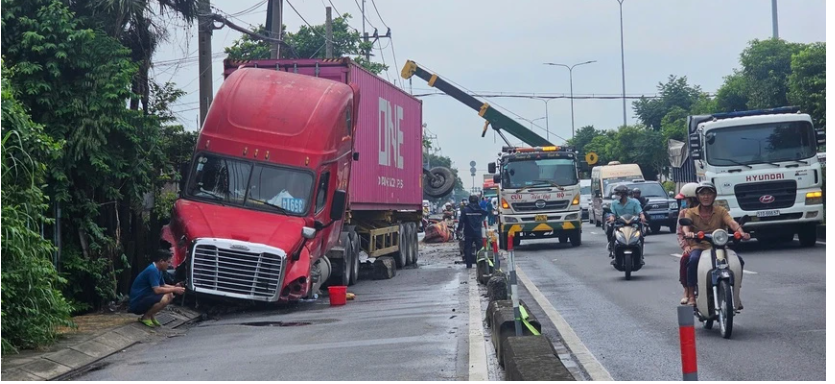 Sáng 21/8, một vụ tai nạn giao thông xảy ra trên đường Phan Văn Khải (đoạn qua xã Tân Phú Trung, huyện Củ Chi, TP.HCM cũ) khi xe container mất lái, lao thẳng vào dải phân cách.