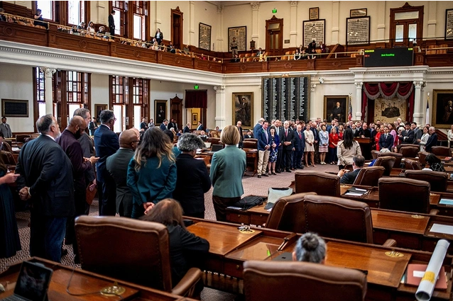 Các nghị viên Dân chủ (trái) và đảng Cộng hòa (phải) tại Hạ viện bang Texas ngày 20.8