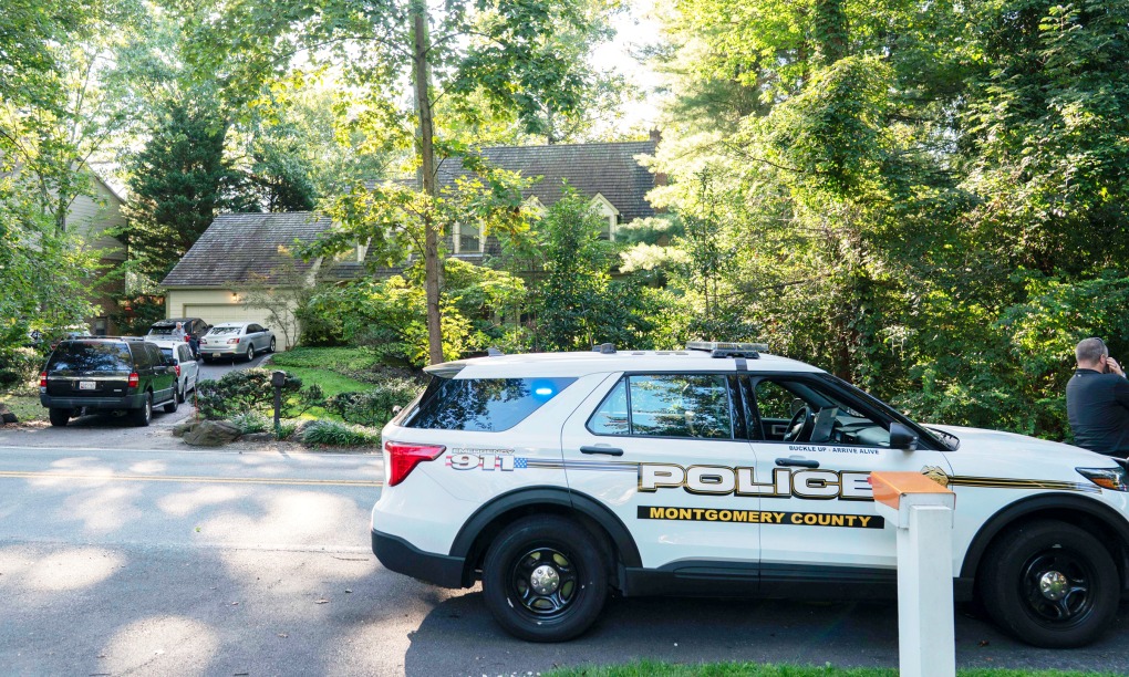 Xe cảnh sát đậu bên ngoài nhà của ông John Bolton ở bang Maryland hôm 22/8. Ảnh: CNN