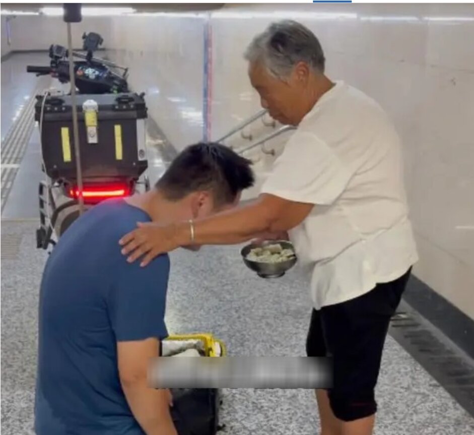 Nghe chuyện, blogger cảm động, xin địa chỉ rồi tìm đến Trịnh Châu. Ở đó, người cháu – một thanh niên thế hệ 2000 – đang mặc đồng phục giao hàng, chạy xe máy điện cùng cậu con trai mới 3 tuổi.