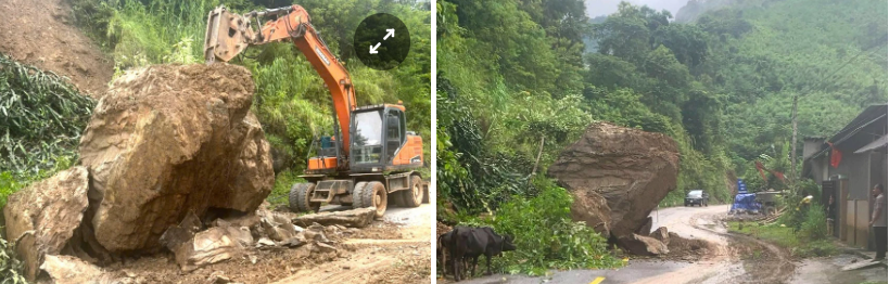 Cơ quan chức năng triển khai xử lý tảng đá để đảm bảo an toàn và giao thông thông suốt.