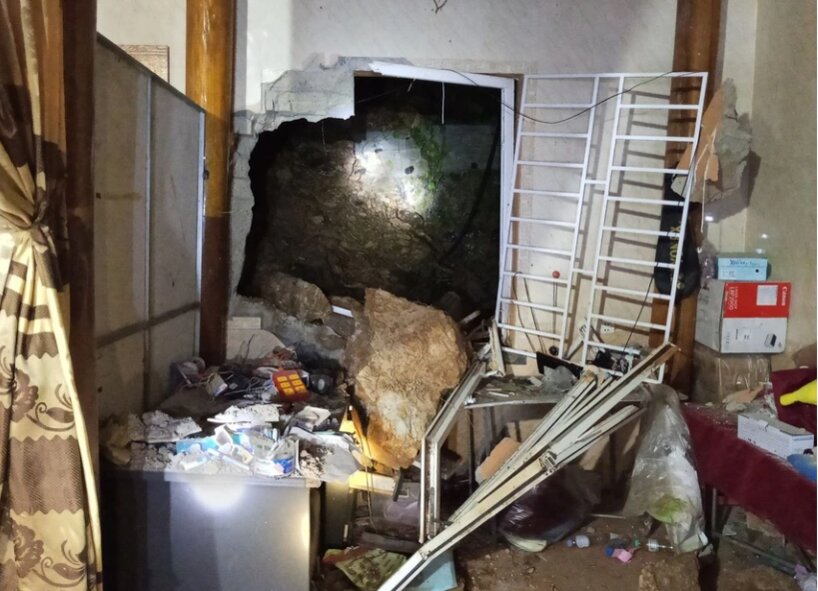 Trước đó vào đêm 26/8, tại bản Hòa Sơn (xã Mường Xén, tỉnh Nghệ An) bất ngờ xảy ra sự cố đá lăn từ núi xuống làm vỡ tường nhà dân.