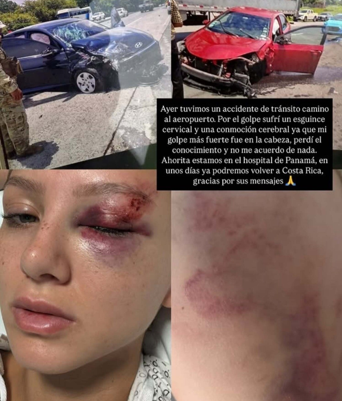 “Hôm qua tôi gặp tai nạn trên đường ra sân bay. Tôi bị chấn thương cổ và não vì va đập mạnh vào đầu. Tôi đã bất tỉnh và không nhớ điều gì. Hiện tại tôi điều trị ở bệnh viện Panama, vài ngày nữa sẽ về lại Costa Rica. Cảm ơn tất cả những lời hỏi thăm của mọi người”, cô chia sẻ trên trang cá nhân.
