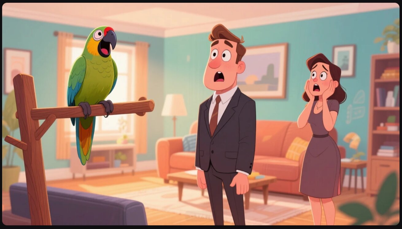 Sau chuyến công tác dài ngày, anh chồng trở về nhà, vừa bước vào cửa thì con vẹt trong phòng khách đã reo lên: – Xin chào anh yêu!