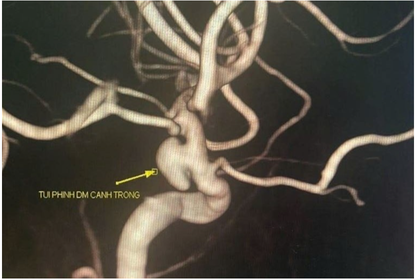Kết quả kiểm tra cho thấy chị có túi phình động mạch cảnh trong trái, kích thước gần 5 mm, cổ rộng 4 mm - dạng dễ vỡ và tiềm ẩn nguy cơ xuất huyết não đột ngột.