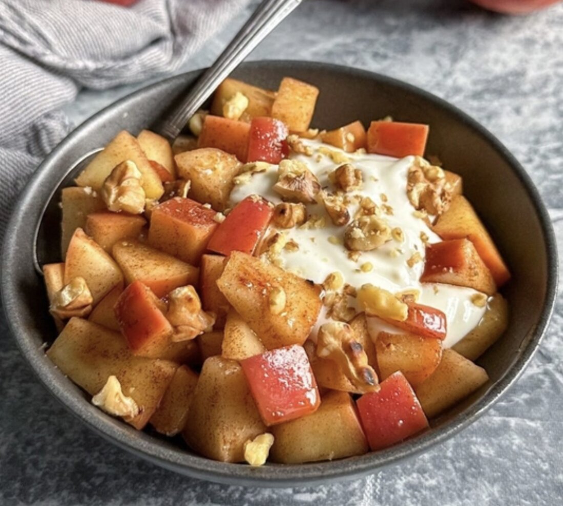 Món sữa chua ăn kèm với táo và hạt óc chó.