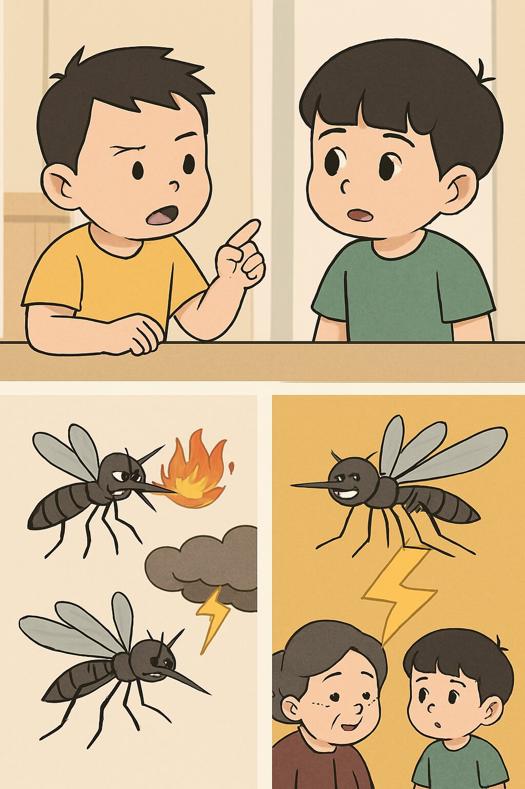 – Muỗi miền Bắc có... lửa. – Muỗi miền Trung có... sấm. – Muỗi miền Nam có... sét.