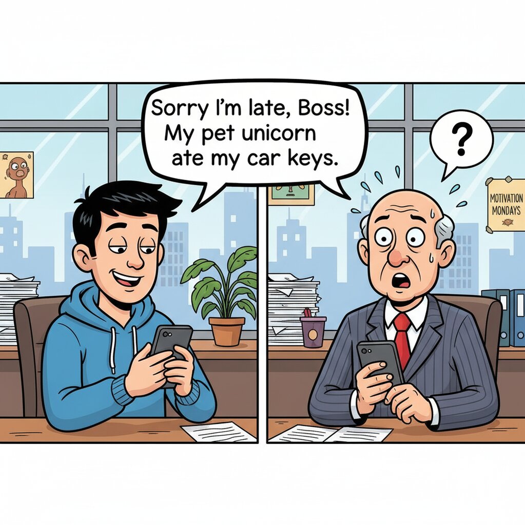 Nhân viên: "Sếp ơi, hôm nay em mệt quá. Cho em xin nghỉ một buổi nhé?"