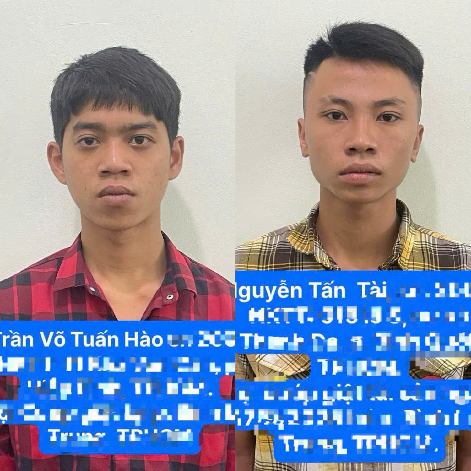 Hai đối tượng bị bắt là Nguyễn Tấn Tài (SN 2004, ngụ cư xá Thanh Đa, phường Bình Quới) và Trần Võ Tuấn Hào (SN 2005, ngụ phường Hiệp Bình).