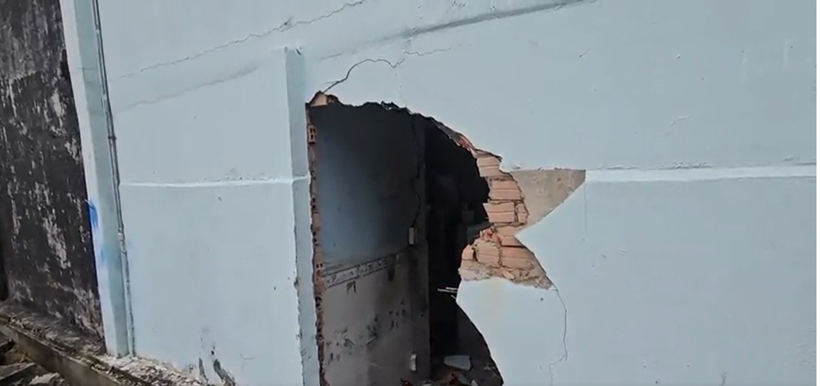 Taxi công nghệ tông sập hàng rào, "húc" thủng tường nhà dân ở đường Nguyễn Công Khi, xã Hóc Môn, TP.HCM. Clip: CH
