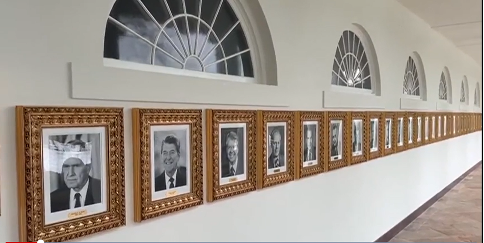 Tọa lạc ở khu vực Cánh Tây của Nhà Trắng, "Đại lộ Danh vọng Tổng thống Mỹ" gồm một loạt ảnh chân dung của các đời tổng thống được trưng bày trong khung vàng. Bắt đầu là chân dung của cố Tổng thống George Washington và kết thúc là hình ảnh của Tổng thống Donald Trump.