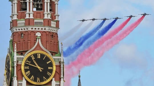 Máy bay Nga trình diễn trên Quảng trường Đỏ. Ảnh: RT.