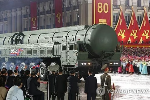 Triều Tiên lần đầu tiên công khai tên lửa đạn đạo liên lục địa (ICBM) Hwasong-20 mới cùng nhiều vũ khí khác tại lễ duyệt binh kỷ niệm 80 năm thành lập đảng Lao động Triều Tiên.