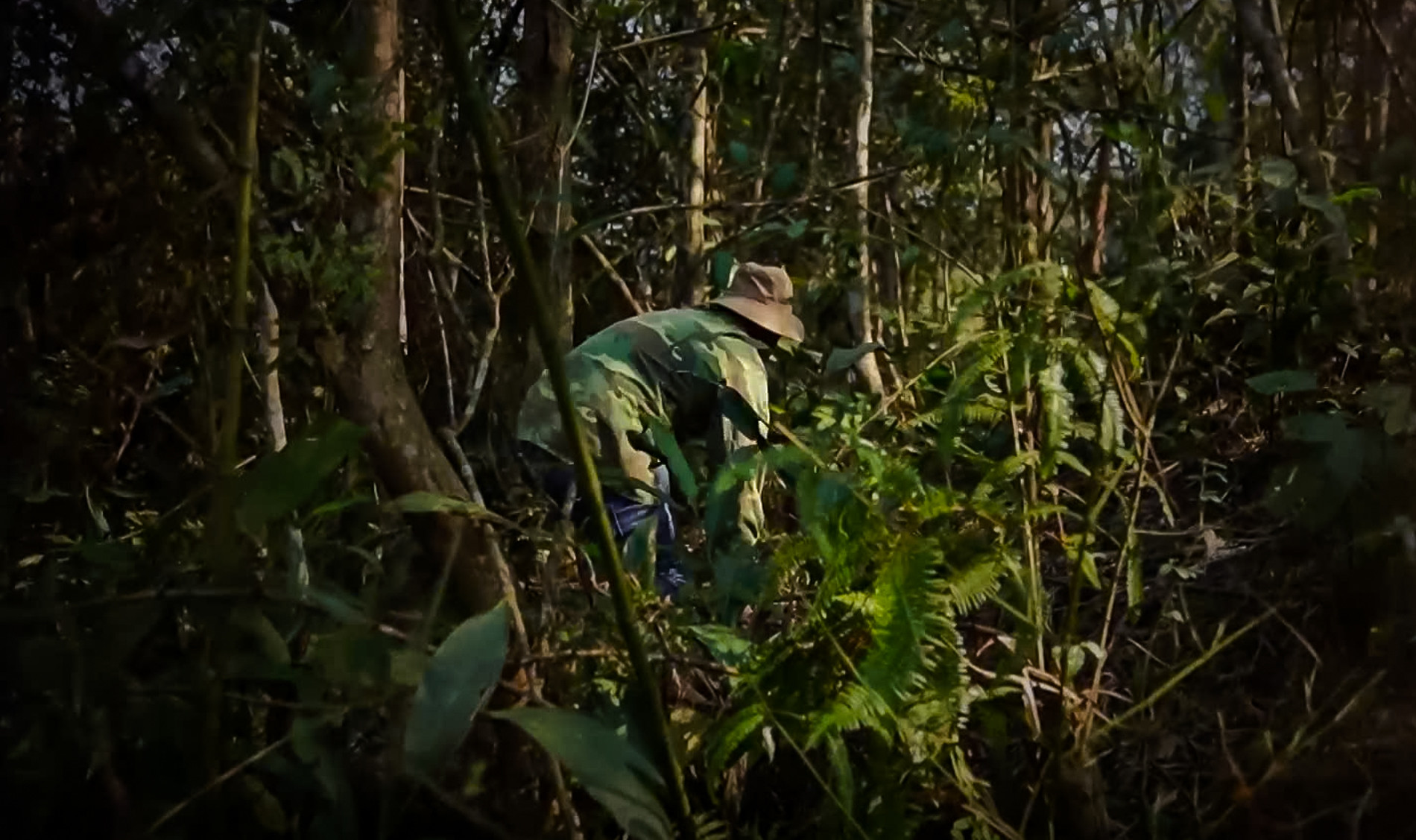 Nhận định đây có thể chính là kẻ gây án, tổ công tác lập tức áp sát kiểm tra. Vừa thấy lực lượng chức năng, đối tượng quay đầu bỏ chạy vào sâu trong rừng để thoát thân.