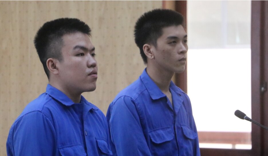 Bị cáo Võ Thành Long (bên trái) tại phiên sơ thẩm. Ảnh: Quang Hưng