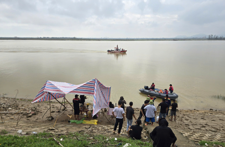 Nhận được tin báo, Công an phường Trường Vinh lập tức cử lực lượng đến hiện trường, phối hợp với Công an tỉnh Nghệ An xuyên đêm tìm kiếm ba bố con trên sông Lam.
