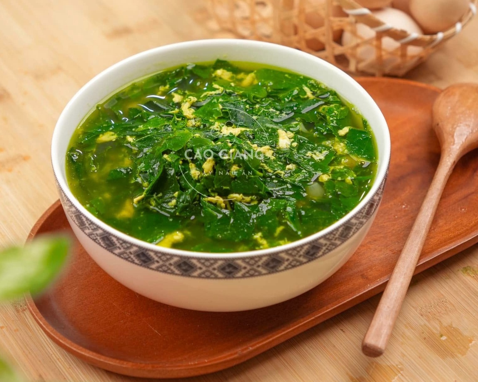 Canh rau ngót nấu trứng xanh mướt điểm vàng vàng