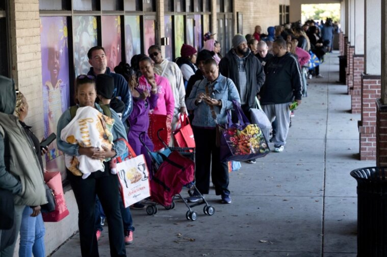 Nhân viên liên bang Mỹ đang không được trả lương do chính phủ đóng cửa, khiến nhiều người đi xếp hàng nhận thực phẩm từ các tổ chức từ thiện.