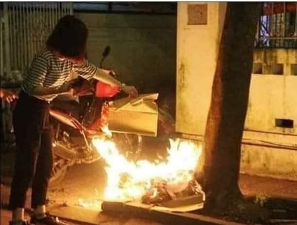Tối đi mua thức ăn quên không mang tiền, liền gọi điện thoại cho em mình mang tiền xuống. Trong lúc chờ đợi, mình thấy một em đốt vàng mã bên đường, mình tiến lại bắt chuyện: