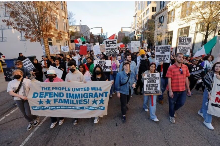 Tại Raleigh, bang North Carolina nhiều cuộc biểu tình đã diễn ra để phản đối chiến dịch trấn áp nhập cư trái phép. Ảnh