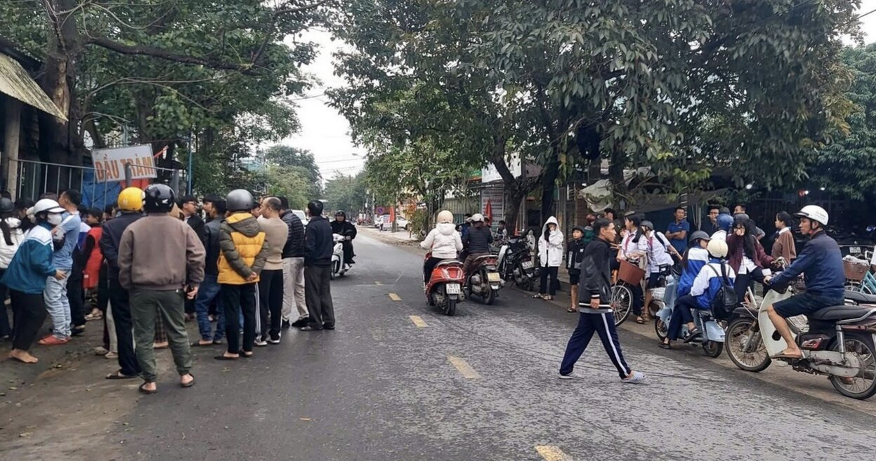 Người dân hiếu kỳ tập trung xem lực lượng chức năng đến nhà vận động ông L. trả lại tiền cho khổ chủ.