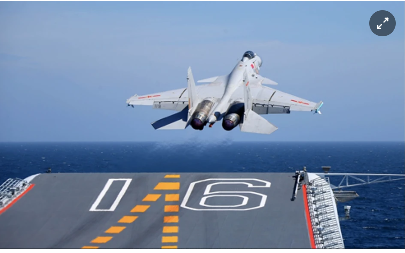Một tiêm kích xuất phát từ tàu sân bay Liêu Ninh của Trung Quốc trên vùng biển Tây Thái Bình Dương. Ảnh: Global Times