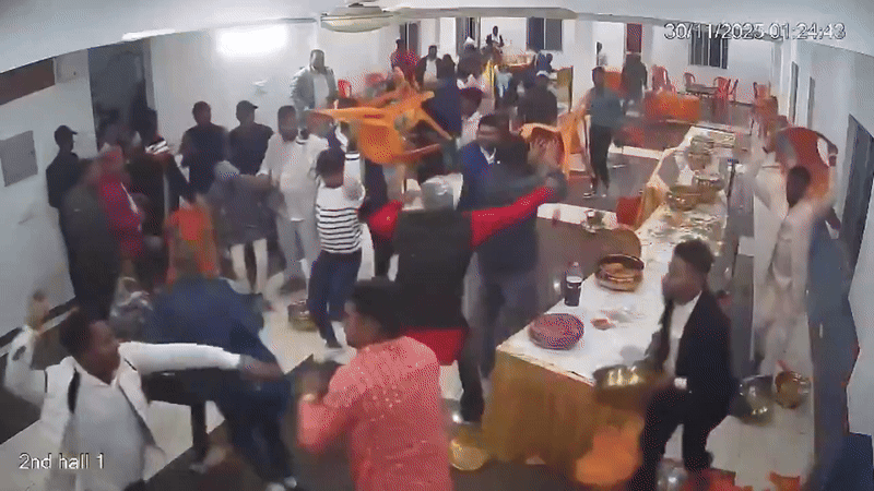 Gia đình cô dâu đang ở khách sạn trong khi họ hàng chú rể đến từ một ngôi làng gần đó. Trong video, khách mời được nhìn thấy đang xô xát gay gắt, dùng ghế nhựa, đĩa và các vật dụng khác để đánh nhau. Những người khác cũng đấm đá nhau. Trong khi đó, cặp đôi cô dâu chú rể được cho là đang trên đường đến sảnh cưới khi sự việc xảy ra.