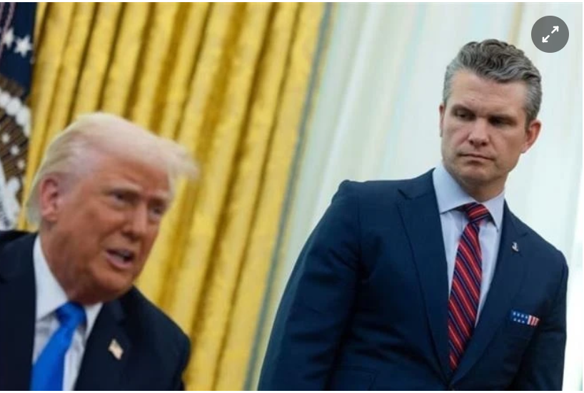 Bộ trưởng Quốc phòng Mỹ Pete Hegseth (phải) lắng nghe bài phát biểu của Tổng thống Mỹ Donald Trump tại Washington, D.C., ngày 21/3/2025. Ảnh: Reuters