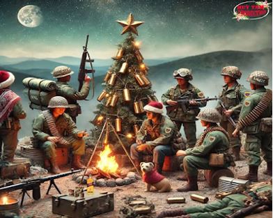 Và rồi, mùa Đông lại đến, Giáng Sinh lại về, trên những tiền đồn, hay những Căn Cứ xa xôi, Người Lính không thể trở về phố thị , để sum họp bên mái ấm gia đình, nên Người Lính đành phải đón mừng Giáng Sinh với tất cả những gì có thể làm, có thể tạo ra những hình ảnh Giáng Sinh, với những Hang Đá “dã chiến” , để cùng nhau, tay súng, tay đàn, hát những bài ca yêu thích, để cùng nhau san sẻ những niềm vui đời Lính Chiến.