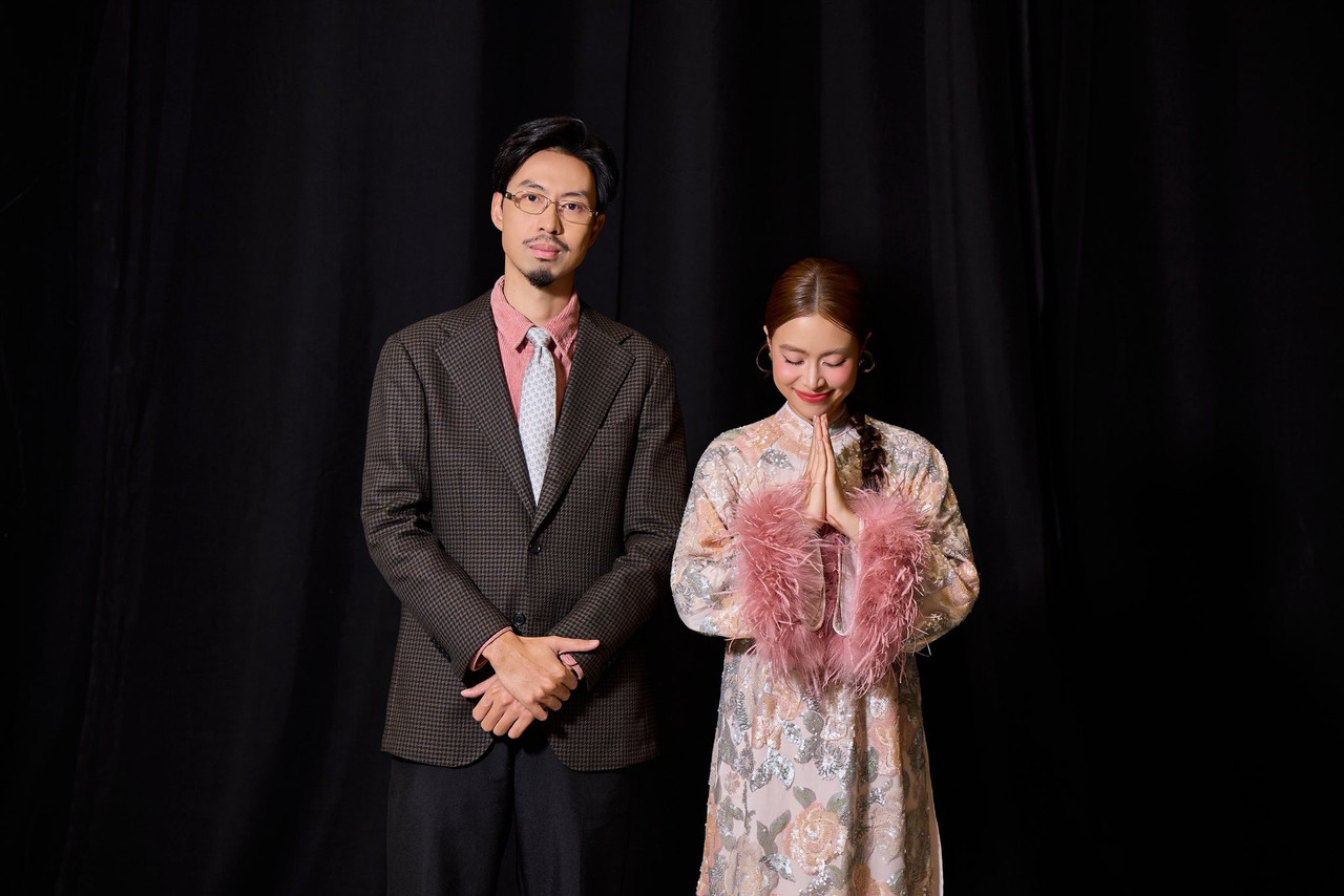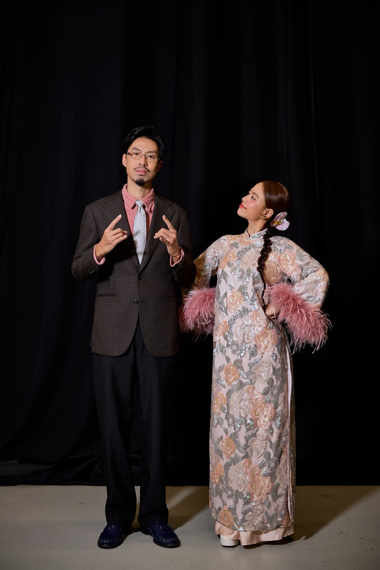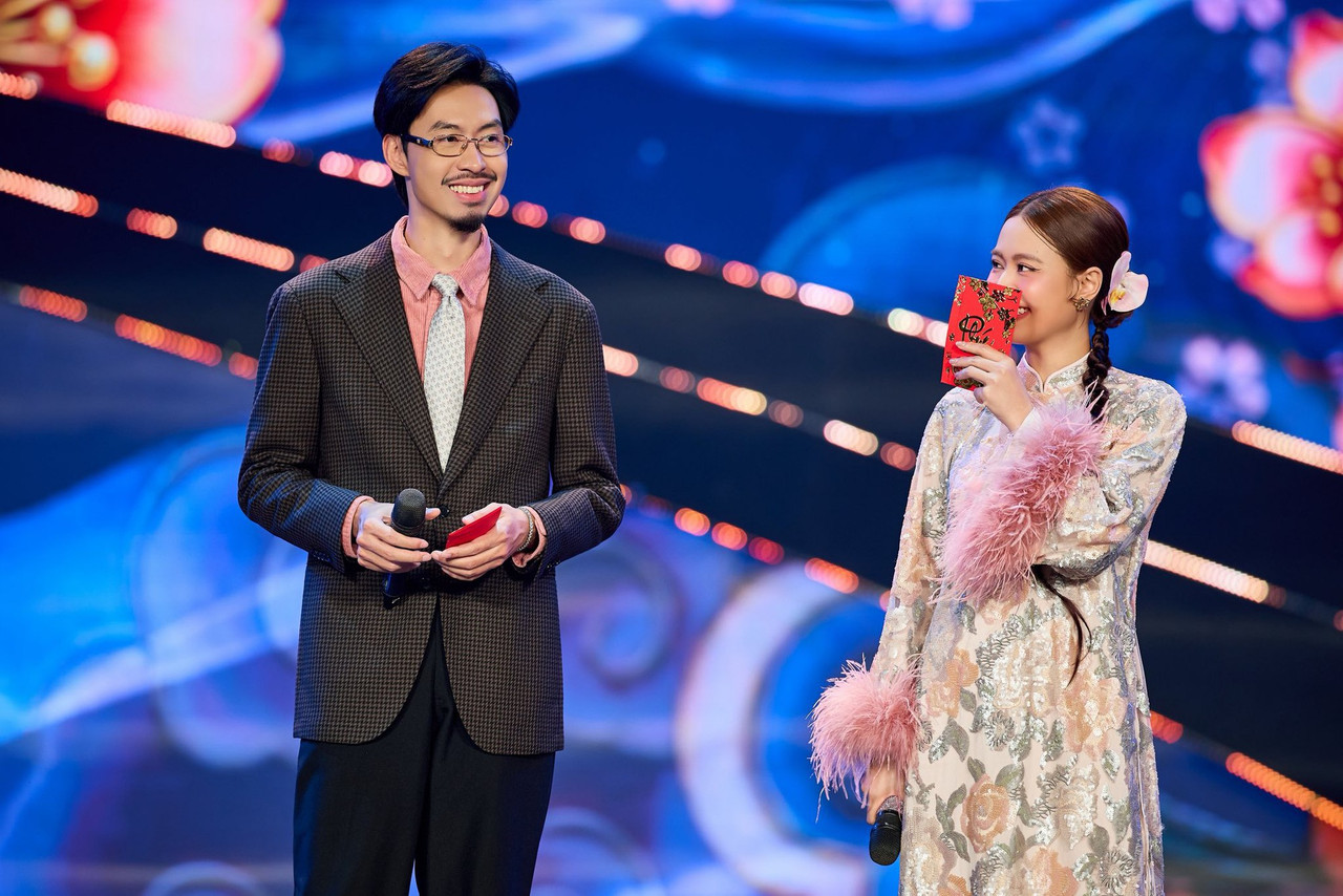Trong loạt ảnh, Hoàng Thuỳ Linh diện áo dài cách tân dịu dàng, Đen Vâu lịch lãm với vest trầm màu. Cả hai thoải mái tạo dáng cạnh nhau, có những khoảnh khắc nhìn đối phương đầy trìu mến. Ở một vài tấm hình sân khấu, họ cùng cầm phong bao lì xì đỏ, nụ cười rạng rỡ và tương tác tự nhiên đến mức không ít người nhận xét: "Không còn là đồng nghiệp đơn thuần nữa".