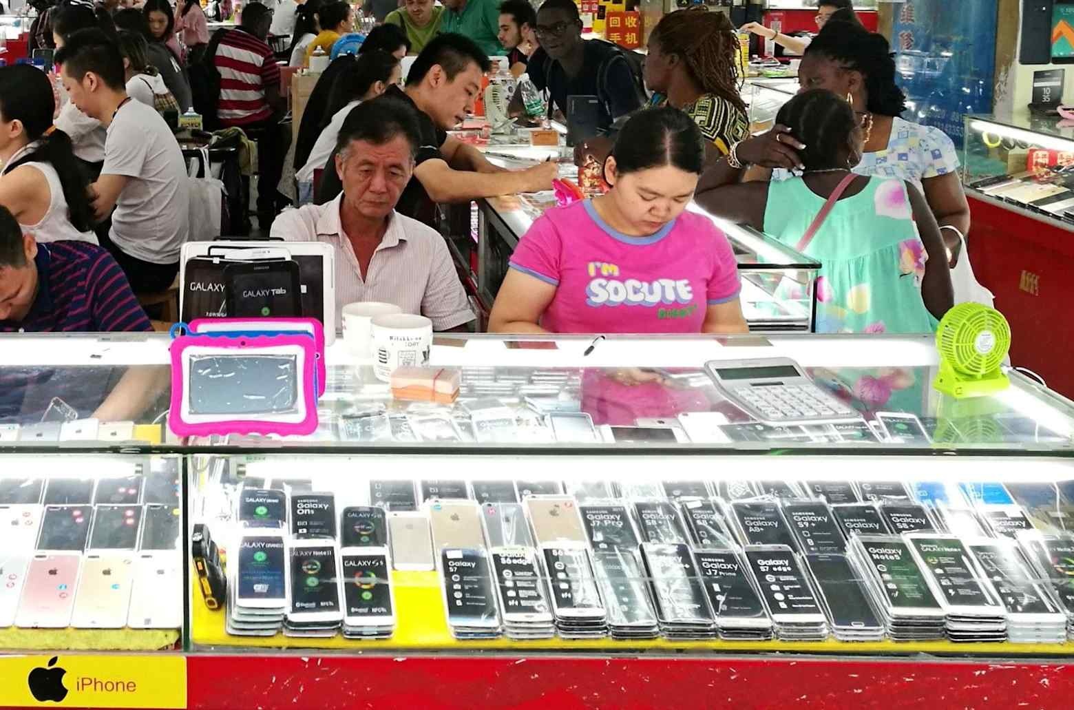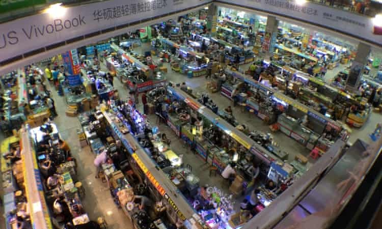 Chợ điện tử Hoa Cường Bắc tại Thâm Quyến, nơi tiêu thụ phần lớn lượng linh kiện điện thoại cũ. (Ảnh: Charles Arthur/The Guardian)
