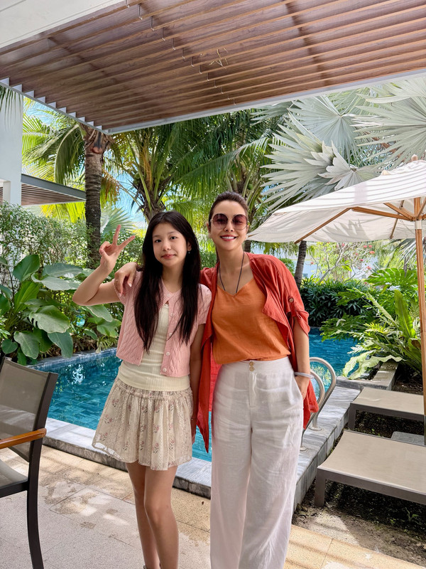 Tuy nhiên, điều khiến cư dân mạng đặc biệt chú ý lại chính là bé Na. Không còn là cô bé nhỏ nhắn ngày nào, Thúy An giờ đây cao lớn hơn, phong thái tự tin và biểu cảm rất tự nhiên trước ống kính. Khi đứng cạnh mẹ - một hoa hậu nổi tiếng, cô bé vẫn không hề lép vế, thậm chí còn được khen ngợi vì thần thái cuốn hút và nét đẹp trong trẻo đúng lứa tuổi.
